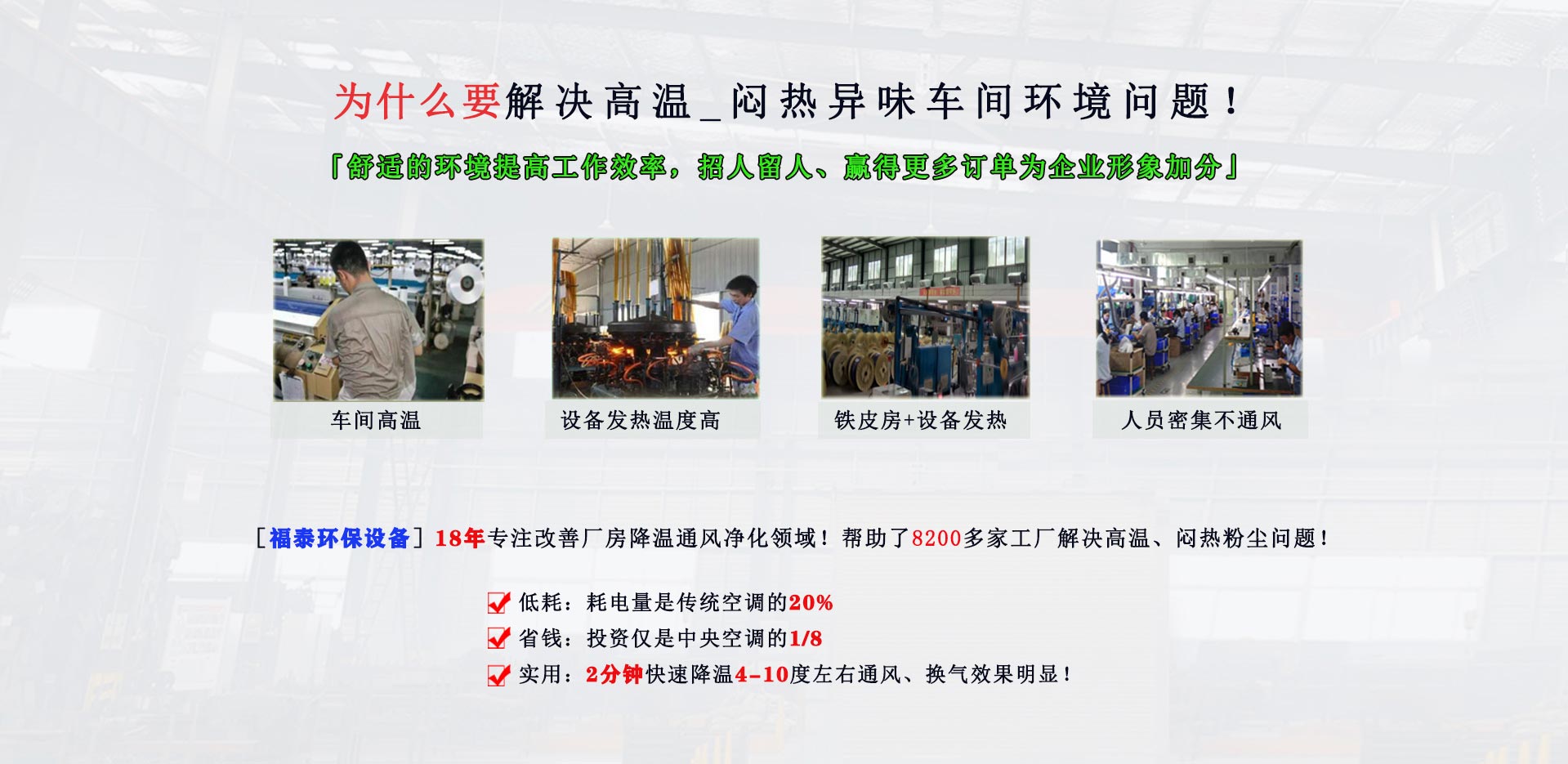 18年只做一件事,解決改善廠房降溫通風凈化領(lǐng)域!幫助了8200多家工廠解決高溫、悶熱問題!